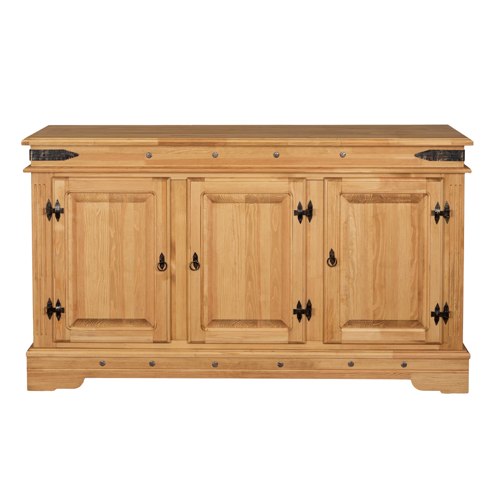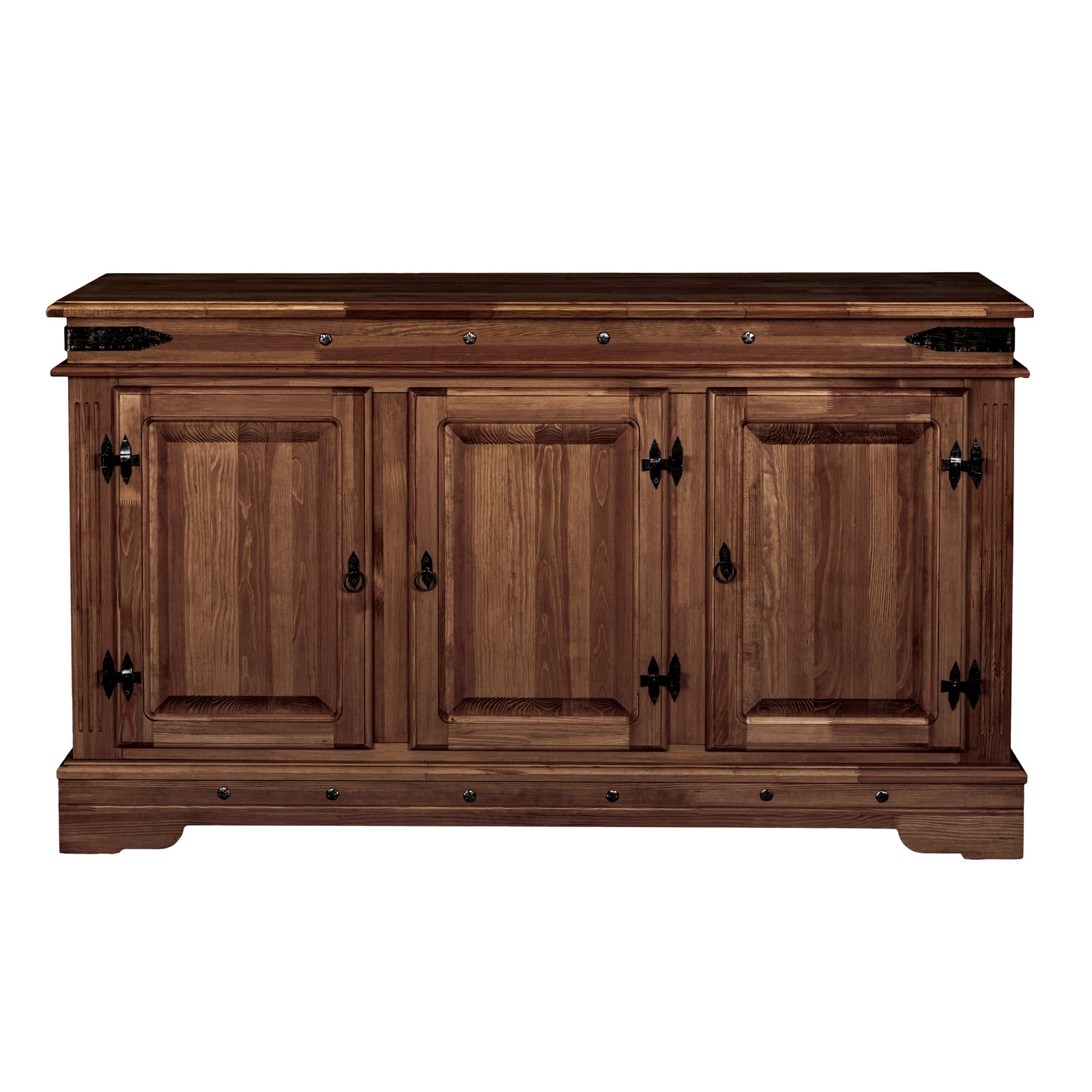 Трехстворчатый комод Викинг 01, выполненный в стиле кантри. Мебель покрыта маслом на водной основе. На выбор представлено 3 цвета: орех, белый, старение. В производство идет массив сосны и фурнитура ручной работы – это гарантирует надежность мебели и длительный срок ее эксплуатации. Комод можно использовать как тумбу под телевизор.