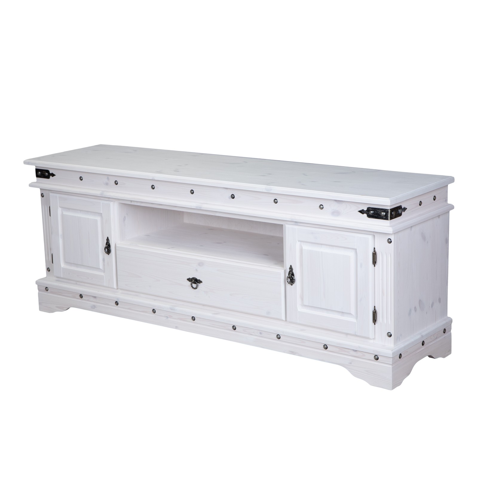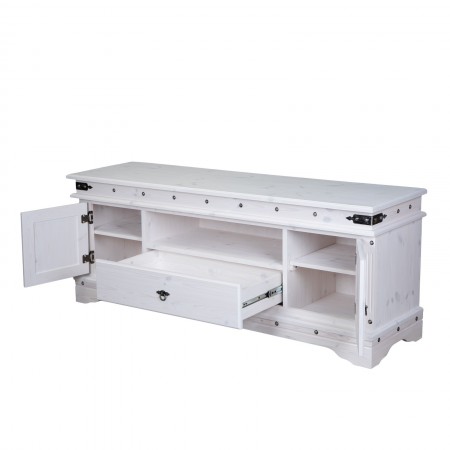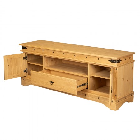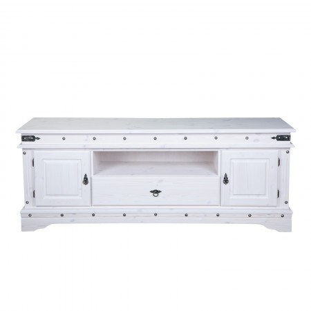 Большая ТВ-тумба на 180 см в простом и аутентичном стиле кантри. Оборудована закрытыми полками, нишей для видеотехники. Идеально подойдет для обустройства просторной гостиной в загородном доме или уютной квартиры с очаровательным дизайном в пасторальной традиции.