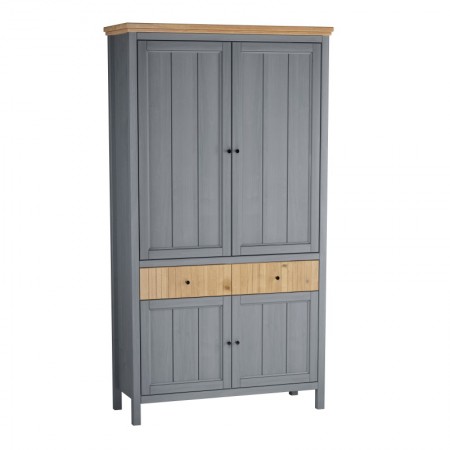 Шкаф для посуды имеет два ящика на шариковых направляющих, четыре глухих дверки, за дверками расположены 6 и 2 полки.