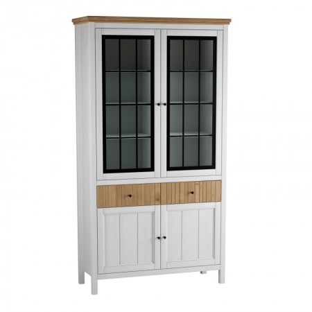 Шкаф для посуды имеет два ящика на шариковых направляющих, две дверки со стеклом и две глухих дверки, за дверками расположены 6 и 2 полки.