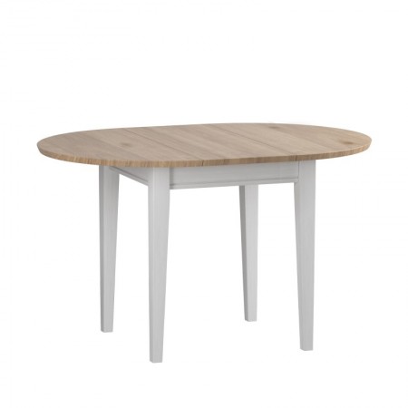 Раскладной обеденный стол из массива сосны. В сложенном состоянии вставка располагается под столешницей. Диаметр стола в сложенном состоянии 90 см, в разложенном состоянии размер стола 90х125 см.