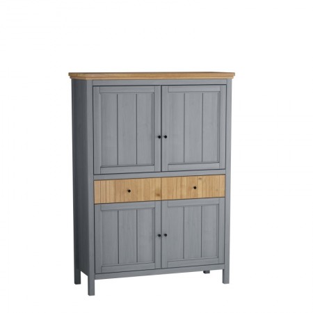 Тумба имеет два ящика на шариковых направляющих и четыре глухие дверки, за каждой дверкой расположена полка.