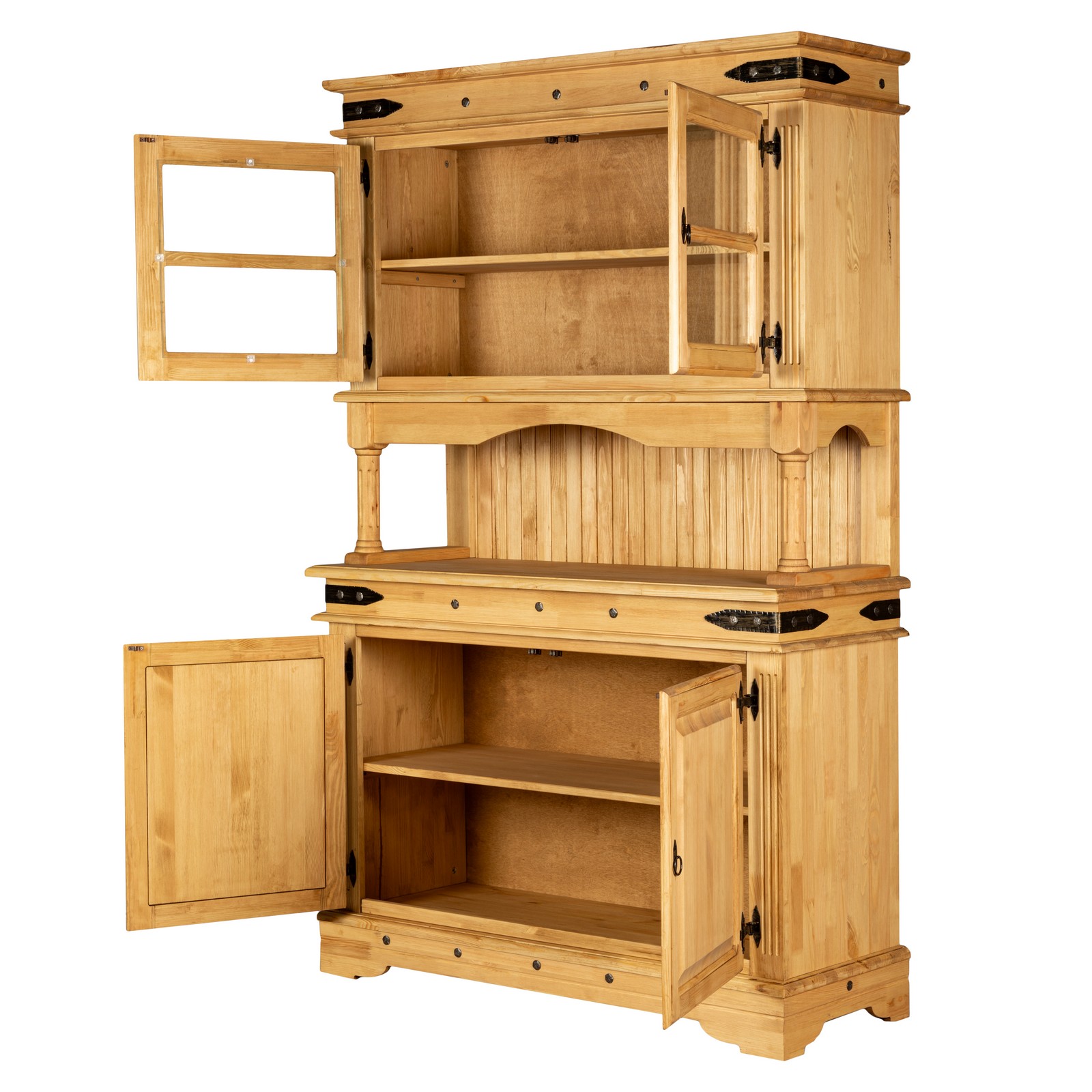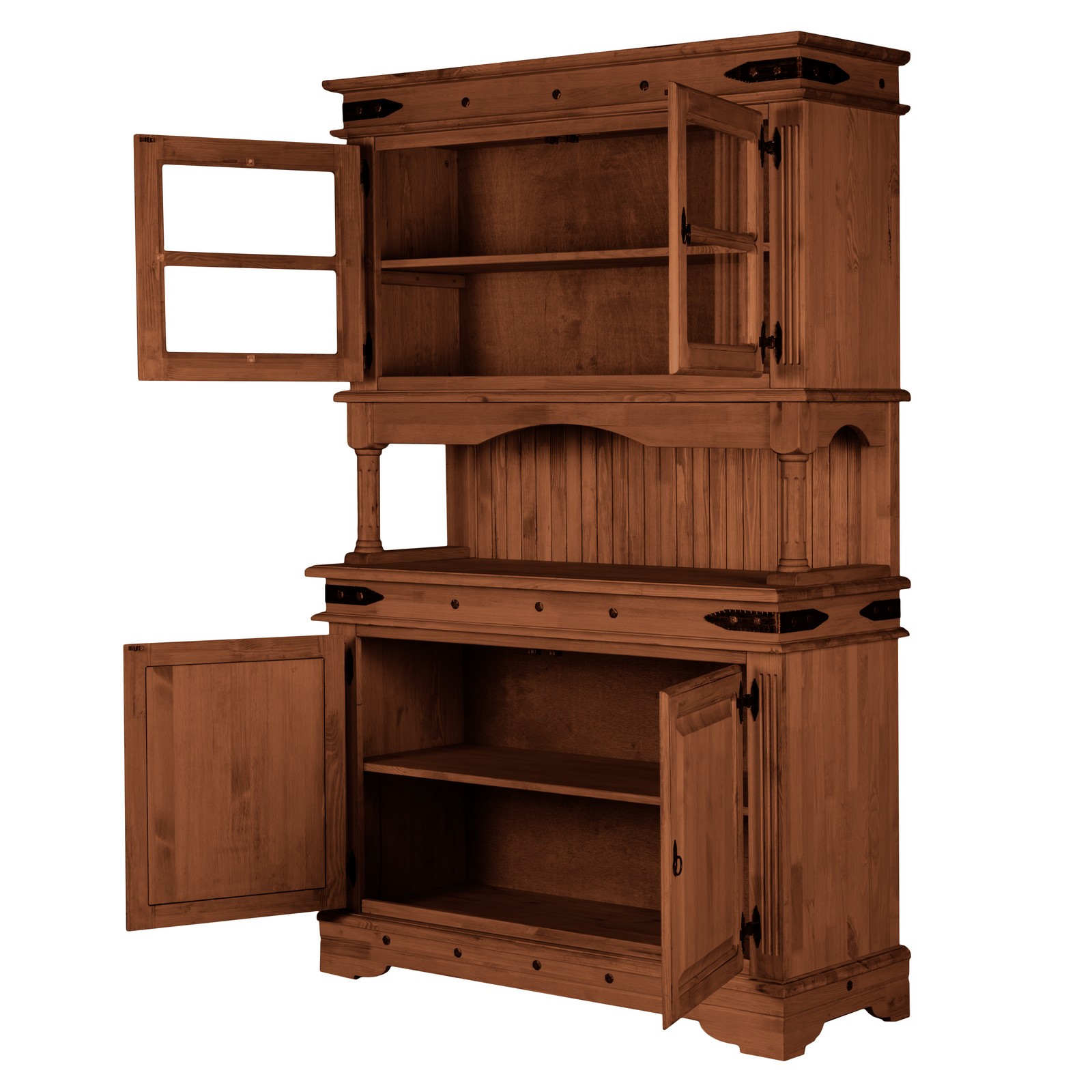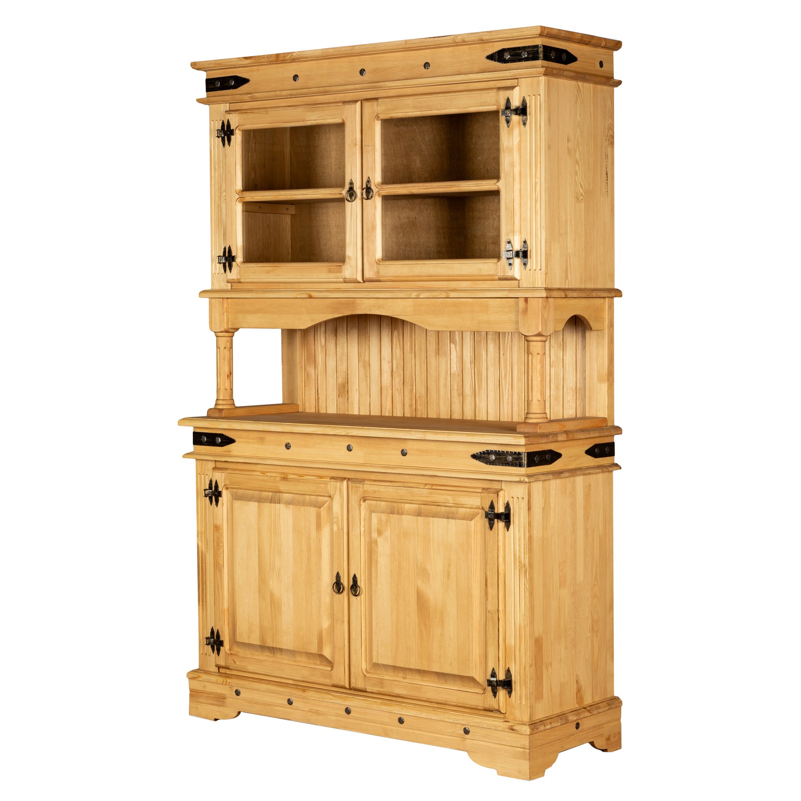 Изготовлено из массива сосны с применением эффекта искусственного старения, имитирующий «червоточины» и «потертости». Изделие обрабатывается составом на основе пчелиного воска по специальной технологии. Структура дерева при этом становится яркой и полностью подчеркивает природную красоту, что создает эффект «антикварной» мебели.