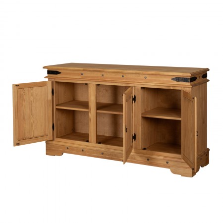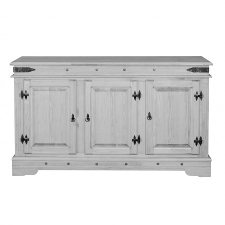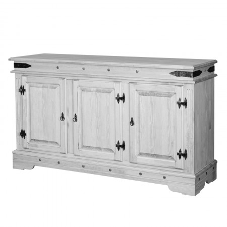 Трехстворчатый комод Викинг 01, выполненный в стиле кантри. Мебель покрыта маслом на водной основе. На выбор представлено 3 цвета: орех, белый, старение. В производство идет массив сосны и фурнитура ручной работы – это гарантирует надежность мебели и длительный срок ее эксплуатации. Комод можно использовать как тумбу под телевизор.