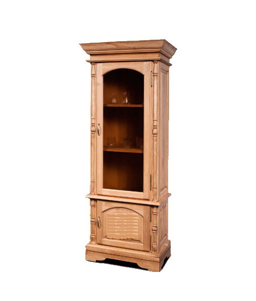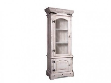 Небольшая витрина из массива сосны для гостиной в стиле кантри. Используется для хранения посуды и размещения интерьерных аксессуаров. Оборудована 3 полками и нишей для хранения вещей, скрытой за распашной дверцей. Идеально подойдет для обустройства загородного дома или квартиры с аутентичным дизайном.