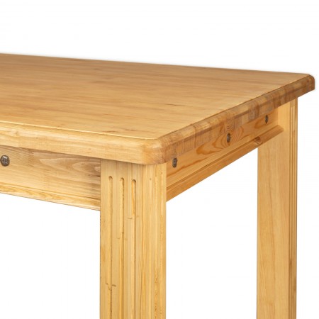 Изготовлено из массива сосны с применением эффекта искусственного старения, имитирующий «червоточины» и «потертости». Изделие обрабатывается составом на основе пчелиного воска по специальной технологии. Структура дерева при этом становится яркой и полностью подчеркивает природную красоту, что создает эффект «антикварной» мебели.