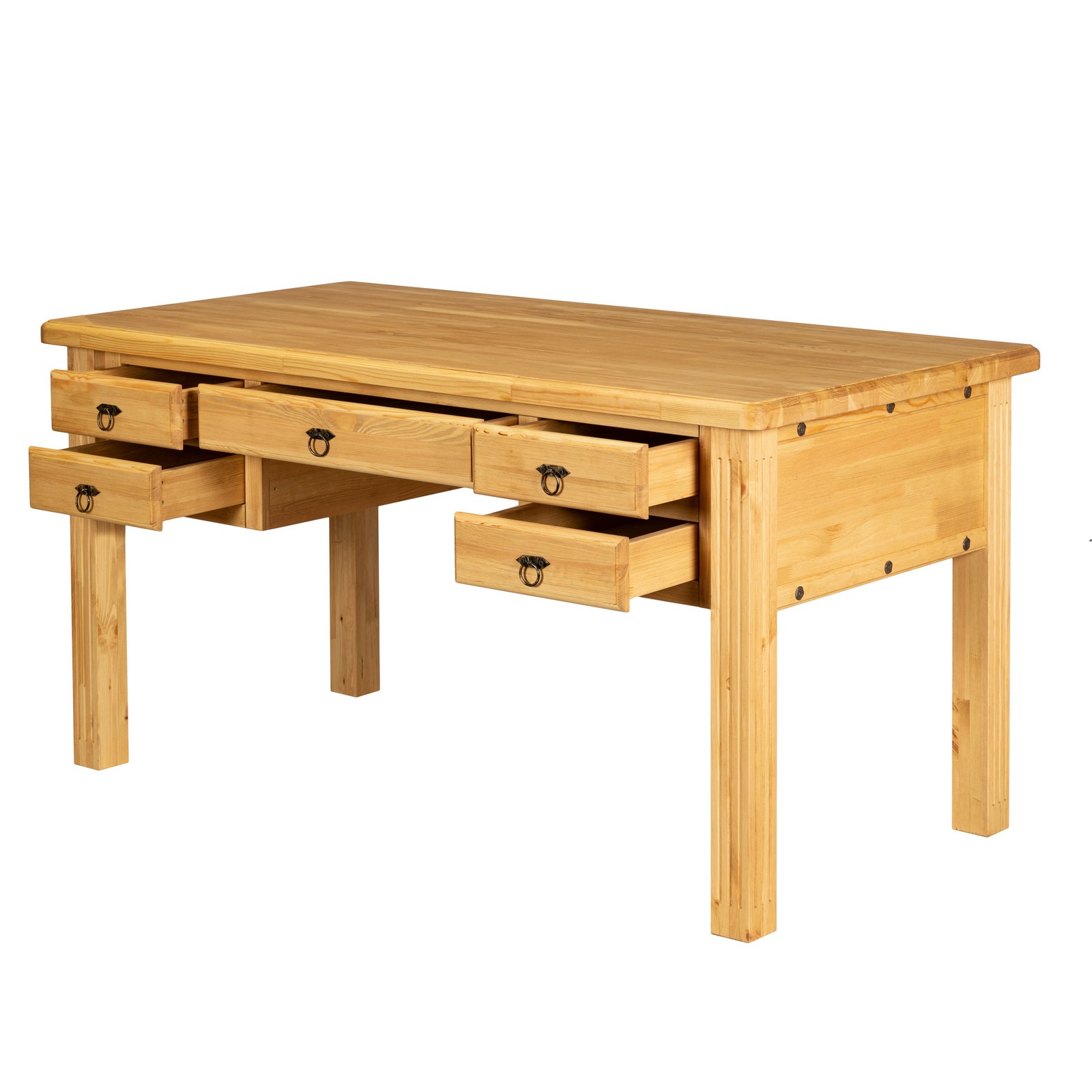 Изготовлено из массива сосны с применением эффекта искусственного старения, имитирующий «червоточины» и «потертости». Изделие обрабатывается составом на основе пчелиного воска по специальной технологии. Структура дерева при этом становится яркой и полностью подчеркивает природную красоту, что создает эффект «антикварной» мебели.