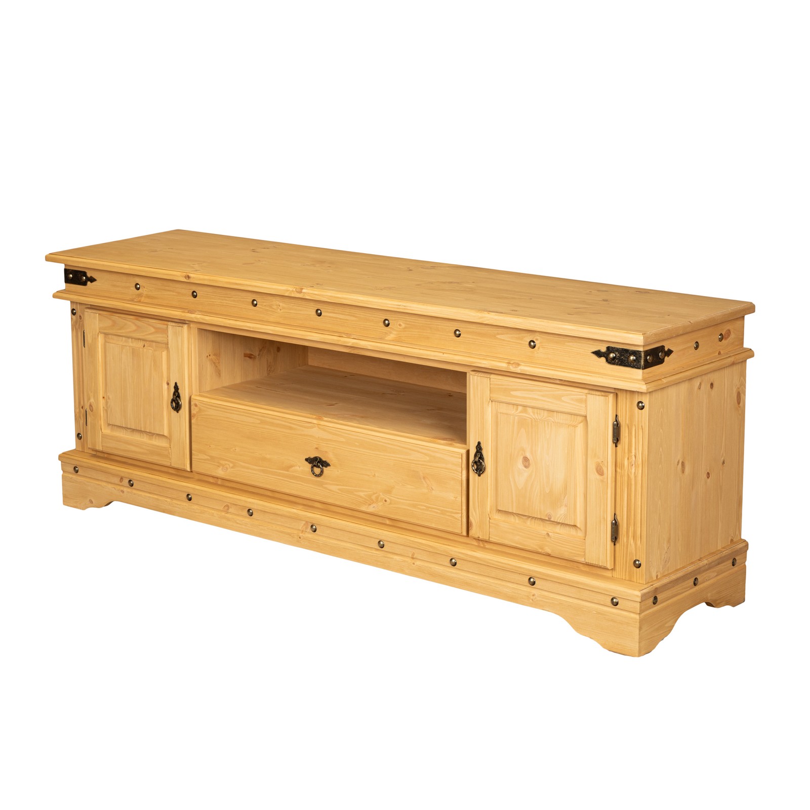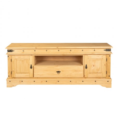 Большая ТВ-тумба на 180 см в простом и аутентичном стиле кантри. Оборудована закрытыми полками, нишей для видеотехники. Идеально подойдет для обустройства просторной гостиной в загородном доме или уютной квартиры с очаровательным дизайном в пасторальной традиции.