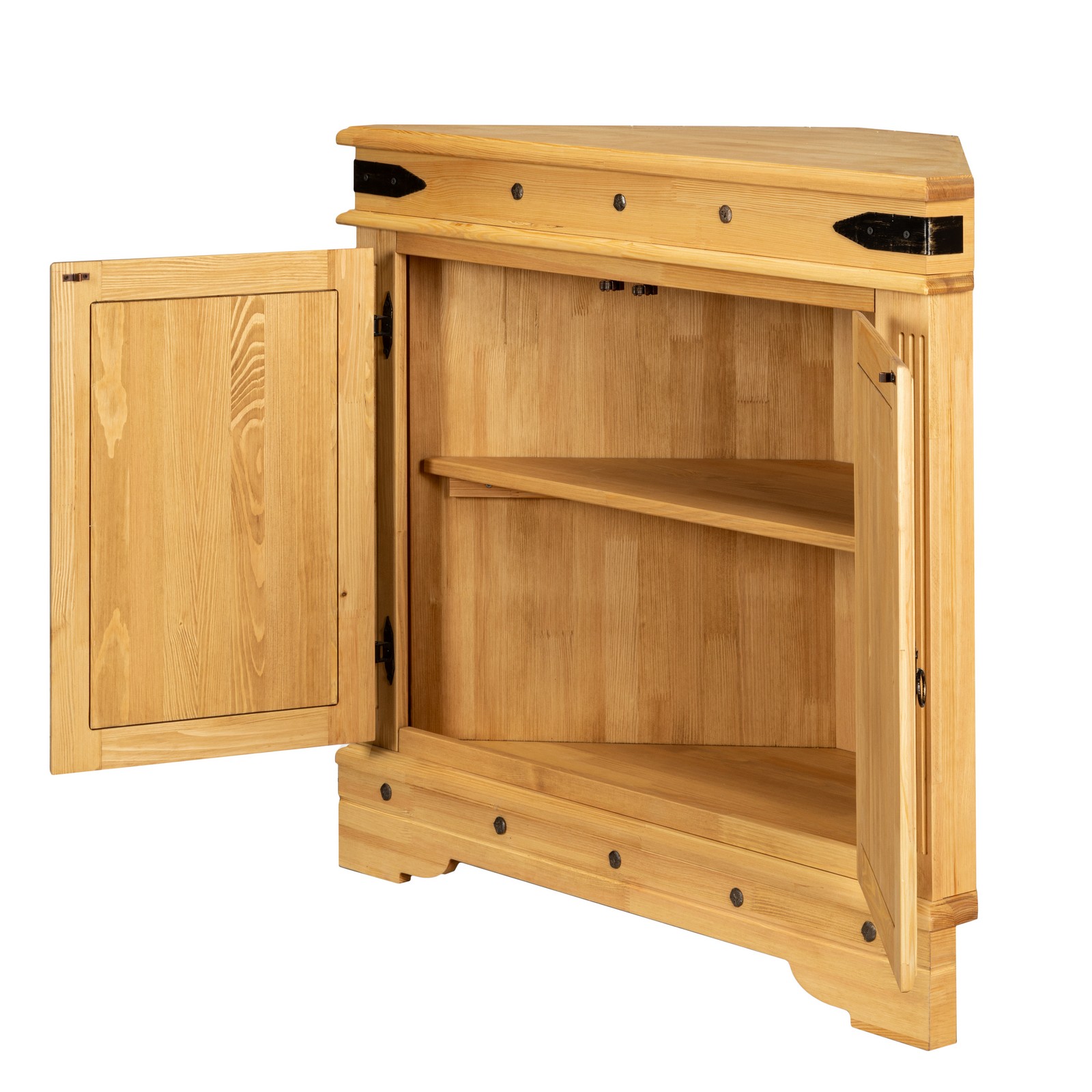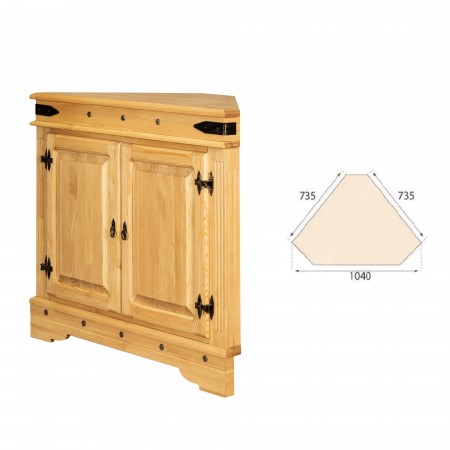 Изготовлено из массива сосны с применением эффекта искусственного старения, имитирующий «червоточины» и «потертости». Изделие обрабатывается составом на основе пчелиного воска по специальной технологии. Структура дерева при этом становится яркой и полностью подчеркивает природную красоту, что создает эффект «антикварной» мебели.