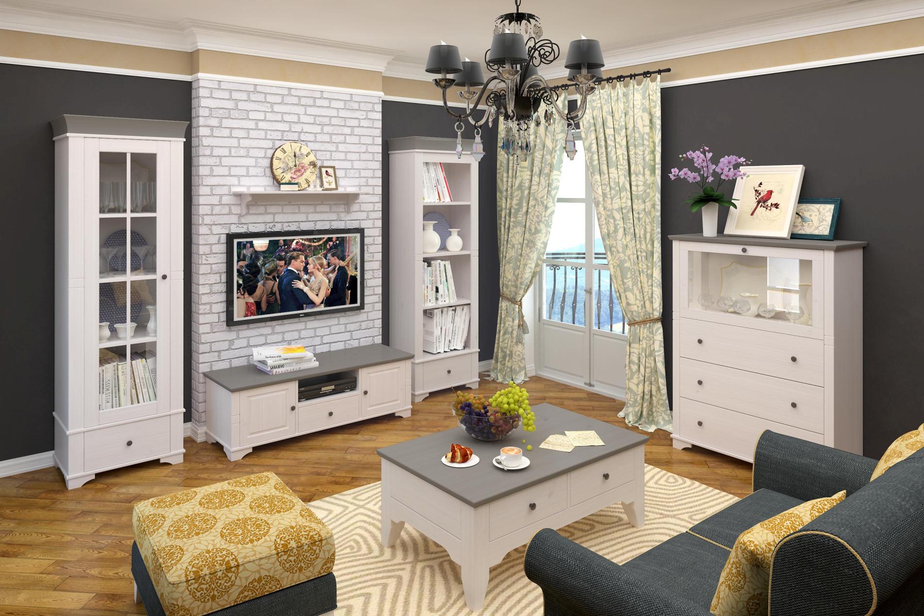 Гостиная "Бейли" сосна, крашение "белый воск"