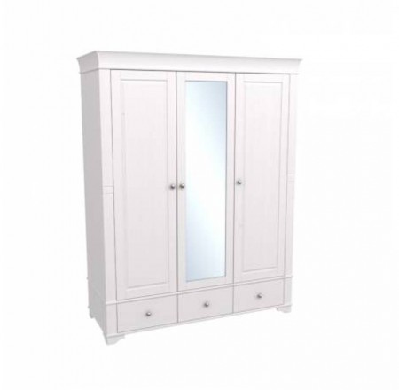 1. Шкаф имеет 3 отделения: правое и левое отделения с филенчатой дверью с полкой и штангой под полкой, среднее отделение с зеркальной дверью имеет 3 полки, которые регулируются по высоте.