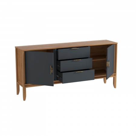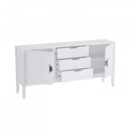 Комод с 3 ящиками на шариковых направляющих с доводчиками и 2-мя дверками. За каждой дверкой расположена полка. Петли дверей с доводчиками.