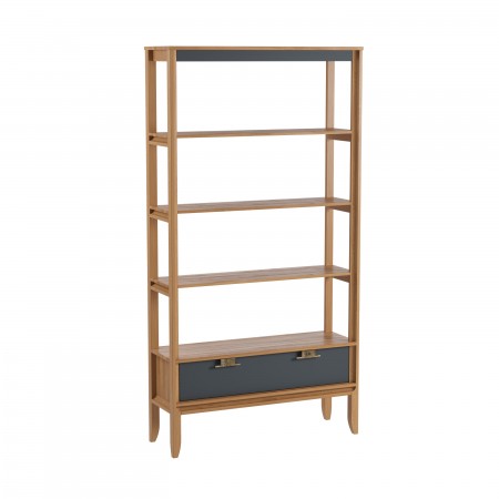 Стеллаж сквозной с 3-мя полками и выдвижным ящиком. Задняя стенка стеллажа (за ящиком) из массива, окрашена в цвет корпуса, что позволяет стеллажом зонировать пространство в комнате и размещать его в любом месте помещения. Направляющие ящика шариковые с доводчиками.