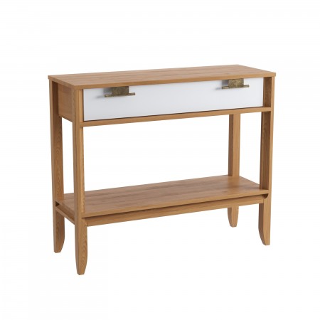 Стол-консоль с выдвижным ящиком и полкой. Направляющие ящика шариковые с доводчиками.