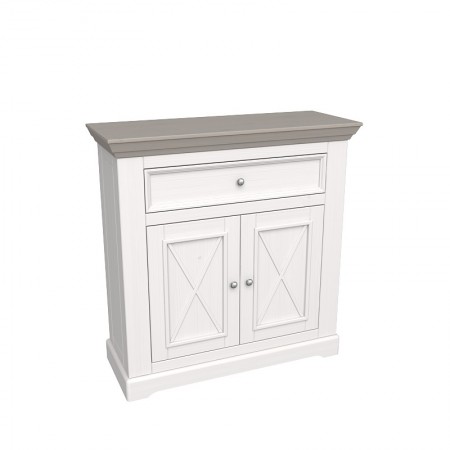 Комод имеет две двери и один выдвижной ящик на роликовых направляющих, за дверками имеется две полки. Удобный комод для хранения обуви.
