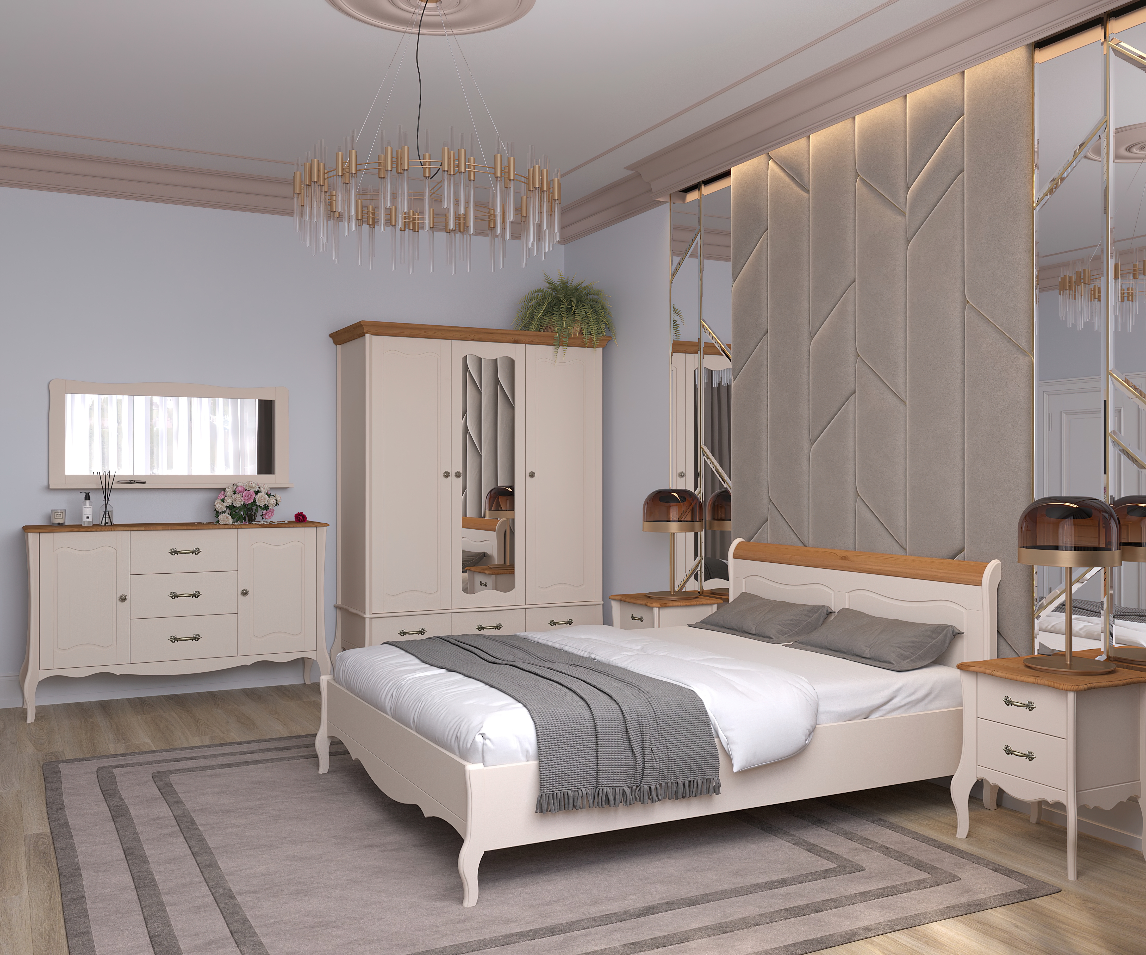 Спальня "ЛеБо" сосна, крашение "бежевый воск + антик"