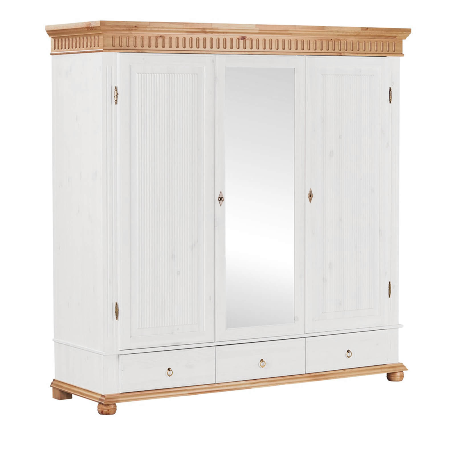 Просторный шкаф “Хельсинки" 3SP-M из массива сосны станет надежным хранилищем ваших любимых предметов гардероба и других вещей. Одна из трех распашных дверей оснащена зеркалом в полный рост для вашего удобства. Внизу находятся три выдвижных ящика. Внутри - вместительное пространство для одежды со штангой и отделение с 4 полками.