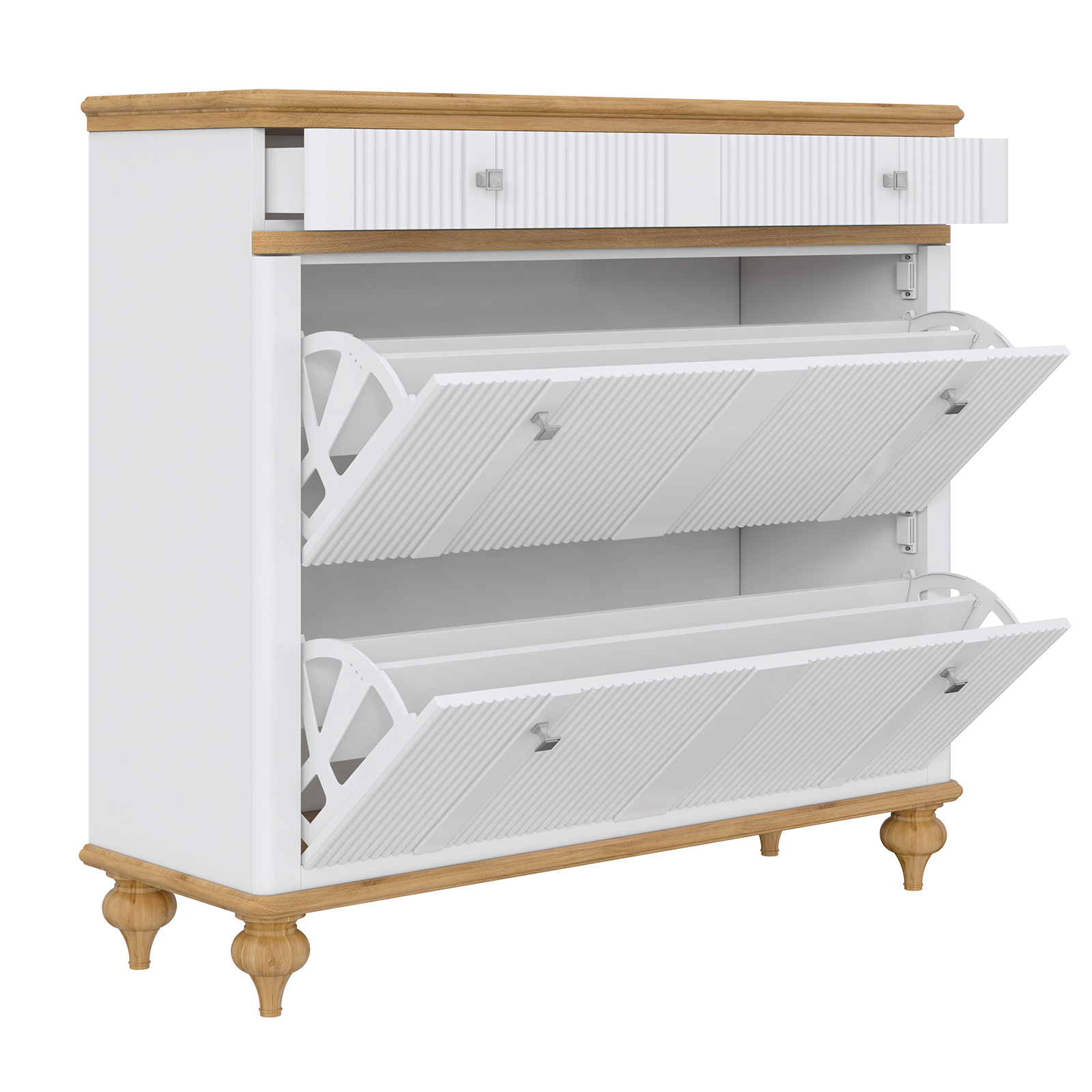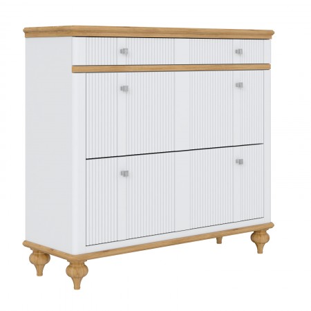 Высокая тумба для обуви «Рандеву» сохранит в порядке весь ваш обувной гардероб. Она состоит из двух вместительных отделений, над которыми находится выдвижной ящик для мелочей. Подойдет как для прихожей в городской квартире, так и для загородного дома.