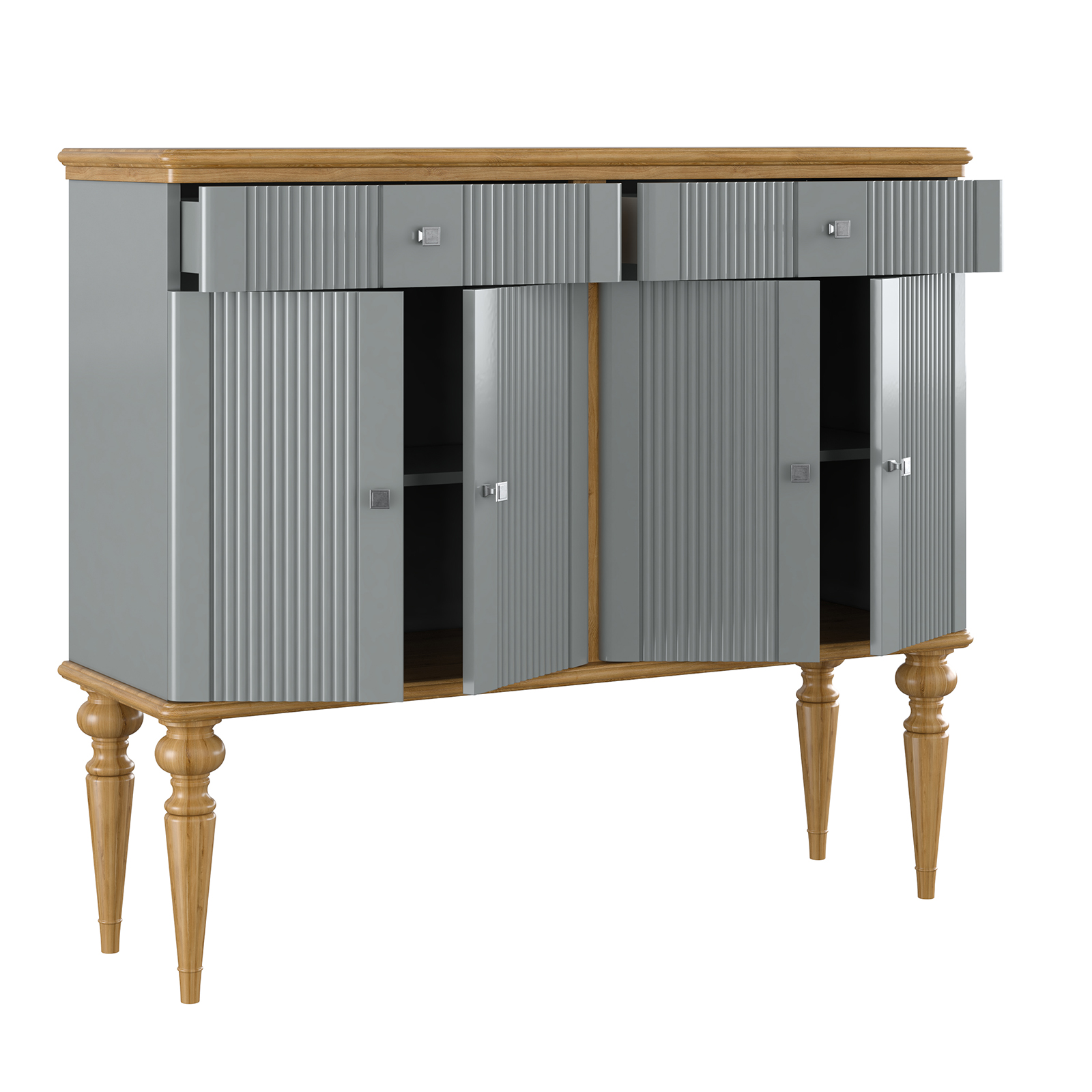 Тумба «Рандеву» 42 широкая и удобная. Состоит из двух вместительных отделений с полками за распашными дверками сверху два широких выдвижных ящика. Подойдет как для прихожей в городской квартире, так и для загородного дома.