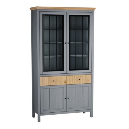 Шкаф для посуды имеет два ящика на шариковых направляющих, две дверки со стеклом и две глухих дверки, за дверками расположены 6 и 2 полки.