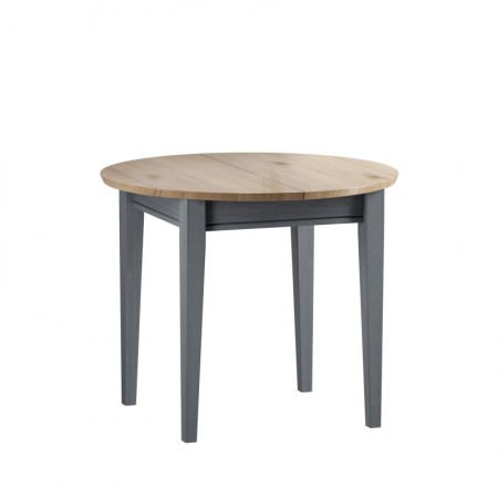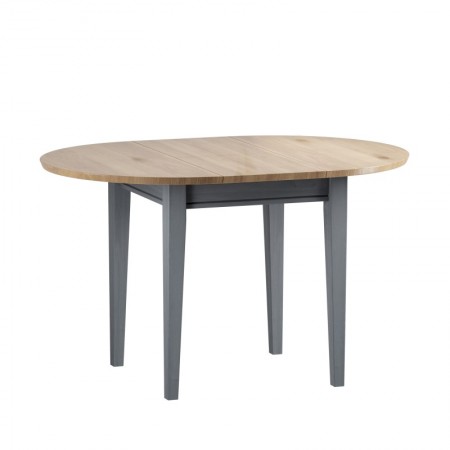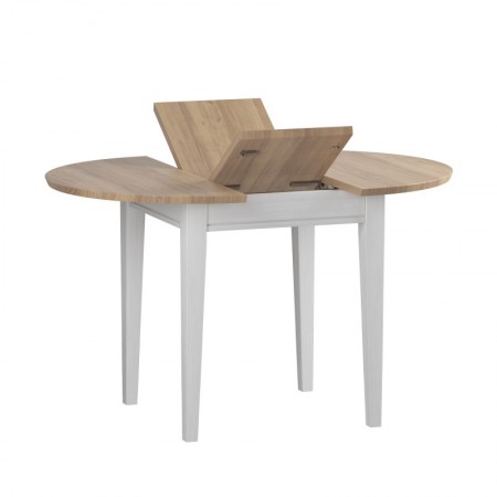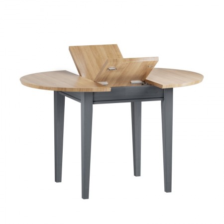 Раскладной обеденный стол из массива сосны. В сложенном состоянии вставка располагается под столешницей. Диаметр стола в сложенном состоянии 90 см, в разложенном состоянии размер стола 90х125 см.
