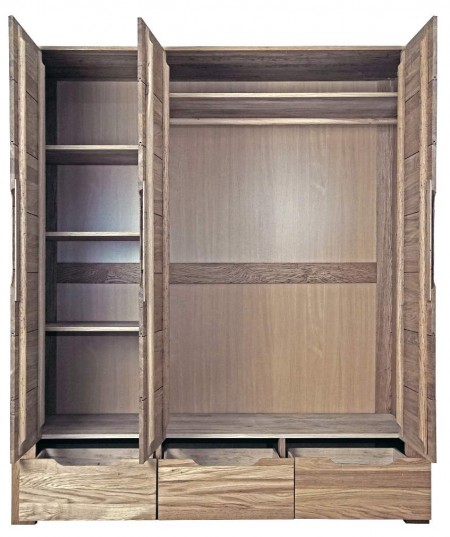 2. Шкаф оборудован 3 выдвижными ящиками на направляющих Hettich. Внутреннее отделение с антресолями разделено на 2 части: зону с регулируемыми по высоте полками и платяное отделение со штангой для одежды.