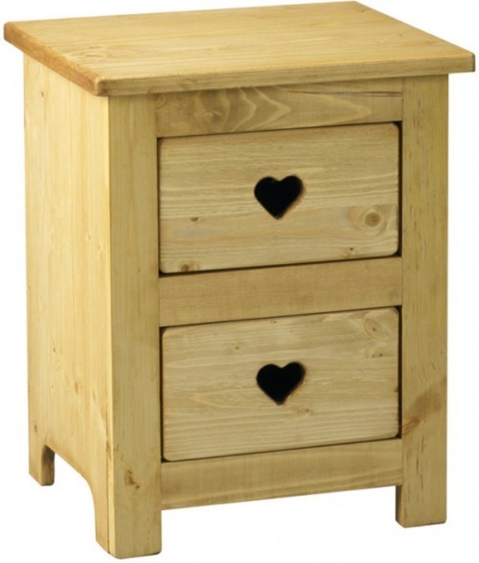 Аккуратная тумбочка для спальни из натурального дерева в стиле Прованс. Ящики декорированы резным сердцем, которое одновременно является ручкой для выдвижения ящика.