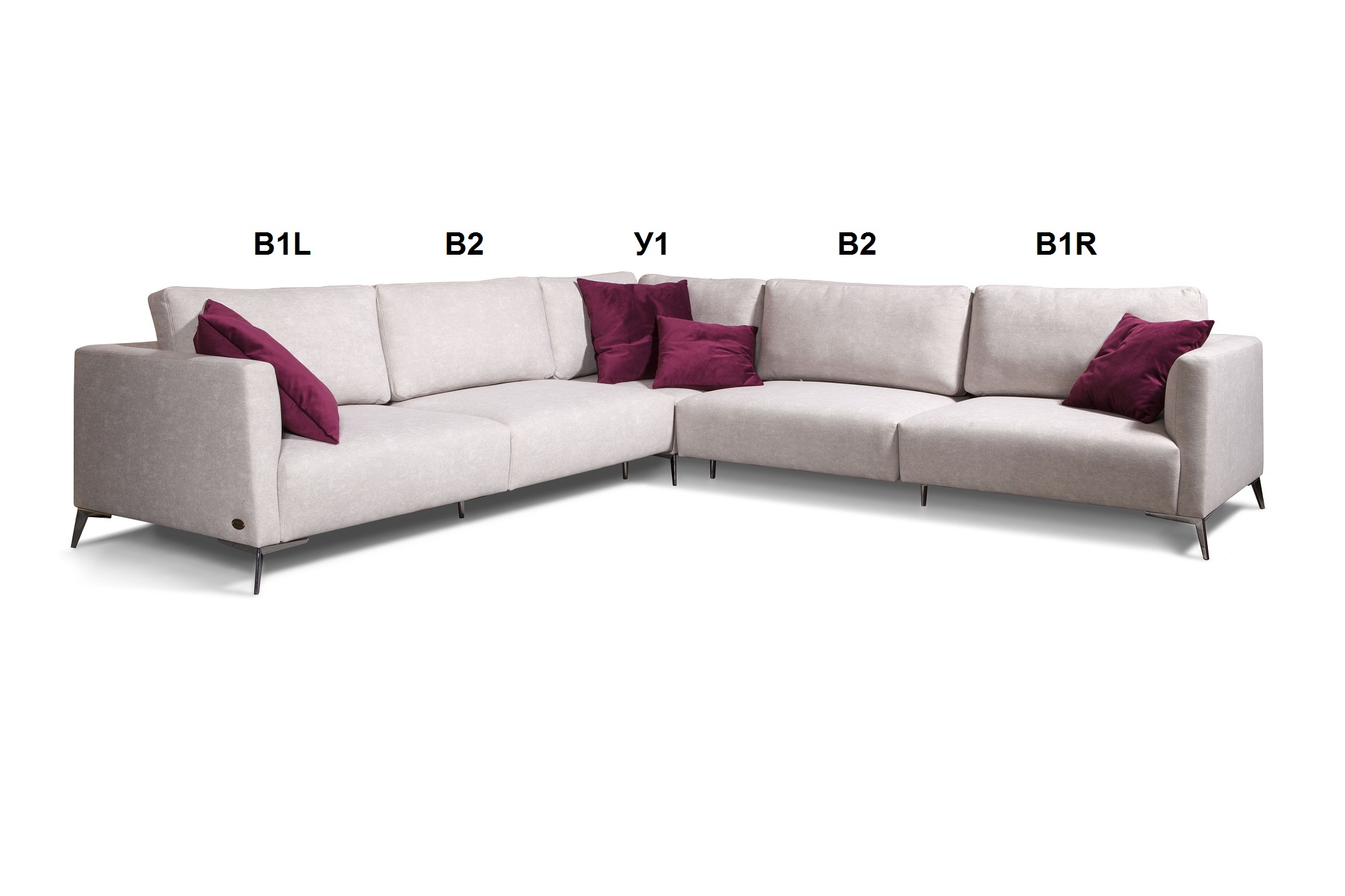 Модульный диван выполнен из секций: В1L+В2+У1+В2+В1R