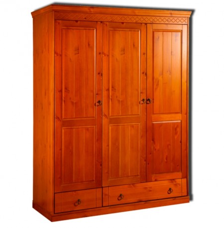 Шкаф имеет широкое отделение со штангой для верхней одежды и двумя полками, узкое отделение с тремя полками для хранения белья, а также два выдвижных ящика.