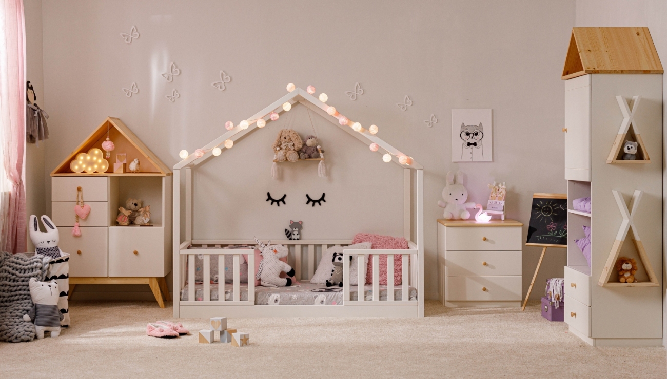 Новая коллекция детской мебели «Тимберика Кидс». Главной её особенностью являются кровати-домики. На фото изделие произвольного цвета из палитры отделок фабрики.